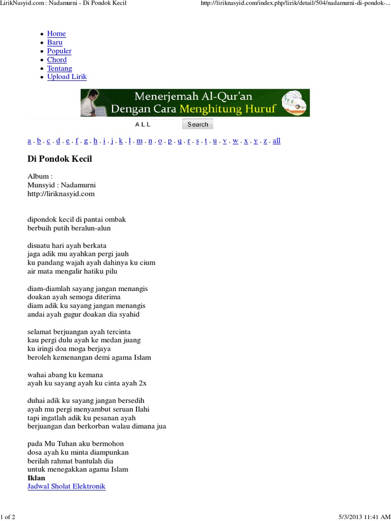 Kumpulan Lirik Lirik Lagu Di Pondok Kecil Nada Murni